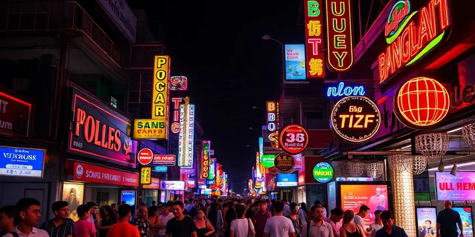 Die Bangla Road ist Patongs Hauptveranstaltung und entschuldigt sich nicht für das, was sie ist. Nach Sonnenuntergang füllt sich die breite Fußgängerstraße mit einem dichten Menschenstrom in beide Richtungen zwischen den Eingängen von Hunderten von Bars, Freiluftclubs, Restaurants und Unterhaltungseinrichtungen, die mit einem eskalierenden Arsenal aus Neonlichtern, LED-Bildschirmen, dumpfem Bass und enthusiastisch eingesetzter Gastfreundschaft um Aufmerksamkeit kämpfen. Für Besucher, die die Bangla Road zum ersten Mal erleben, ist das Ausmaß und die Intensität der Sinnesumgebung genuinely überraschend — es gibt nirgendwo in Thailand genau so etwas. Die Straße erreicht ihre volle Intensität gegen 22 Uhr und setzt sich bis 2–3 Uhr morgens fort. Der Tiger Entertainment Complex, abseits der Bangla Road gelegen, repräsentiert das Großveranstaltungsende des Patong-Nachtlebens — ein mehrstöckiger Komplex mit einem vollwertigen Nachtclub, Kabaretttheater und mehreren Themenbar-Räumen unter einem Dach. Der Club empfängt internationale Gast-DJs zu Wochenendveranstaltungen und ist das technisch ausgefeilteste Großformat-Veranstaltungslokal der Insel in Bezug auf Produktionsqualität. Illuzion, an der Bangla Road selbst, ist das andere große Club-Format mit einer Kapazität von über 5.000 und regelmäßigen internationalen DJ-Buchungen.