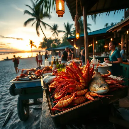 Street food stalls and markets operate primarily in the morning (6–10 AM for breakfast markets) and evening (5–11 PM for night markets and walking streets). The Friday Walking Street in Fisherman's Village is weekly and weather-dependent — it occasionally cancels in heavy rain. The seafood restaurants along the beach are open for lunch and dinner year-round. Visiting outside peak season (May–October) means shorter queues and more attentive service at popular spots.