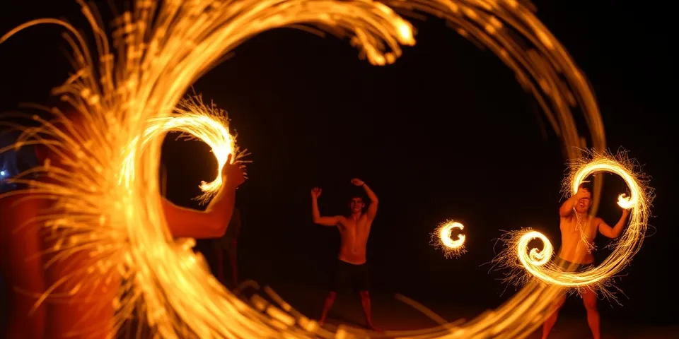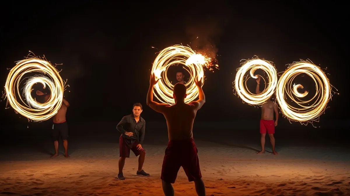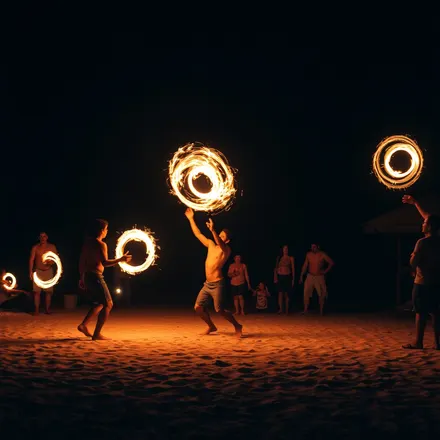- Fire poi training community — beyond the performances, a community of fire arts practitioners who train on the beach and welcome newcomers to learn