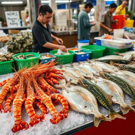 Ban Phe is the centre of Rayong's seafood universe. This working port town serves simultaneously as the departure point for Koh Samet ferries and as the province's main seafood wholesale and retail hub. The Ban Phe fish market runs along the waterfront road, and its scale is impressive — dozens of stalls display the morning's catch on ice, covering the full spectrum of Gulf marine life. The market is most active in the early morning when boat crews are unloading, but retail selling continues through the day until stock runs out, typically by early afternoon.