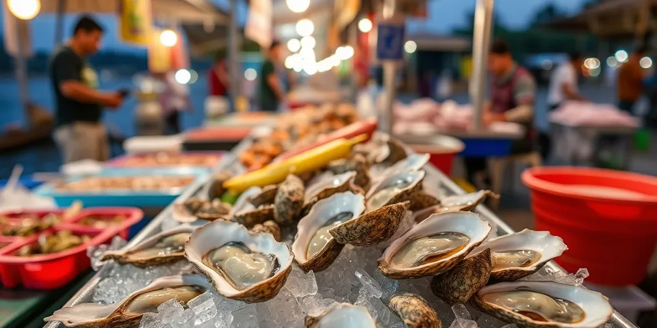Surat Thani's oysters from Ban Don Bay benefit from the unique conditions of the inner Gulf of Thailand — relatively calm, nutrient-rich waters where traditional rope-culture oyster farming has been practiced for generations. The local Hoy Dong preparation — marinating live oysters in a mixture of garlic, chilli, lime juice, and fish sauce before serving them raw — is a Surat Thani speciality that exists nowhere else in Thailand in quite the same form. The oysters themselves are rounder and milder than Pacific varieties, with a clean brininess that the pungent marinade amplifies rather than overwhelms. The combination is remarkable and justifies a stop in Surat Thani for serious food travellers even if you have no interest in the ferry connections.